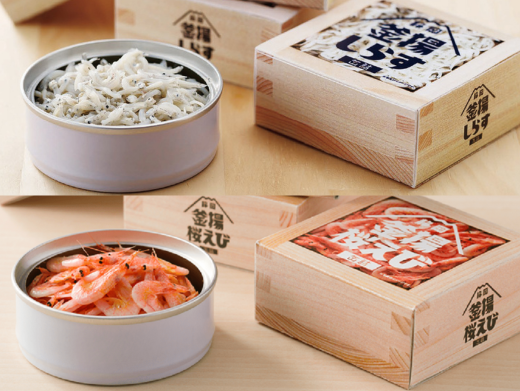 日本一深く豊かな海、駿河湾で獲れた新鮮な「しらす」と「桜えび」を、獲れたてすぐに釜揚げにした缶詰。