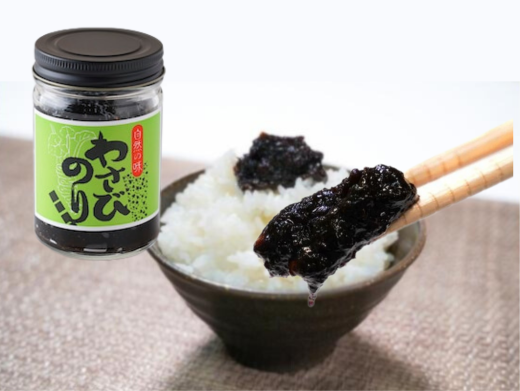 甘辛く炊き上げた海苔の佃煮の中で、わさび特有の「ツーン」とした風味がアクセントとなり、後引く美味しさです。