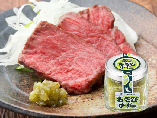 伝統の柚子胡椒に、和の香辛料の王様であるわさびの風味とシャキシャキとした食感をプラスしました。