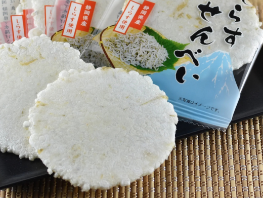 新鮮なしらすをたっぷりと生地に練り込み、香ばしくパリッと焼き上げました。