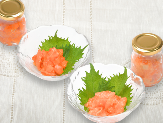 強い甘みと明太子のピリ辛が絶妙に絡み合う、贅沢な味わいの塩辛です。