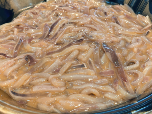 旨味を引き出す隠し包丁を入れた柔らかなイカ。